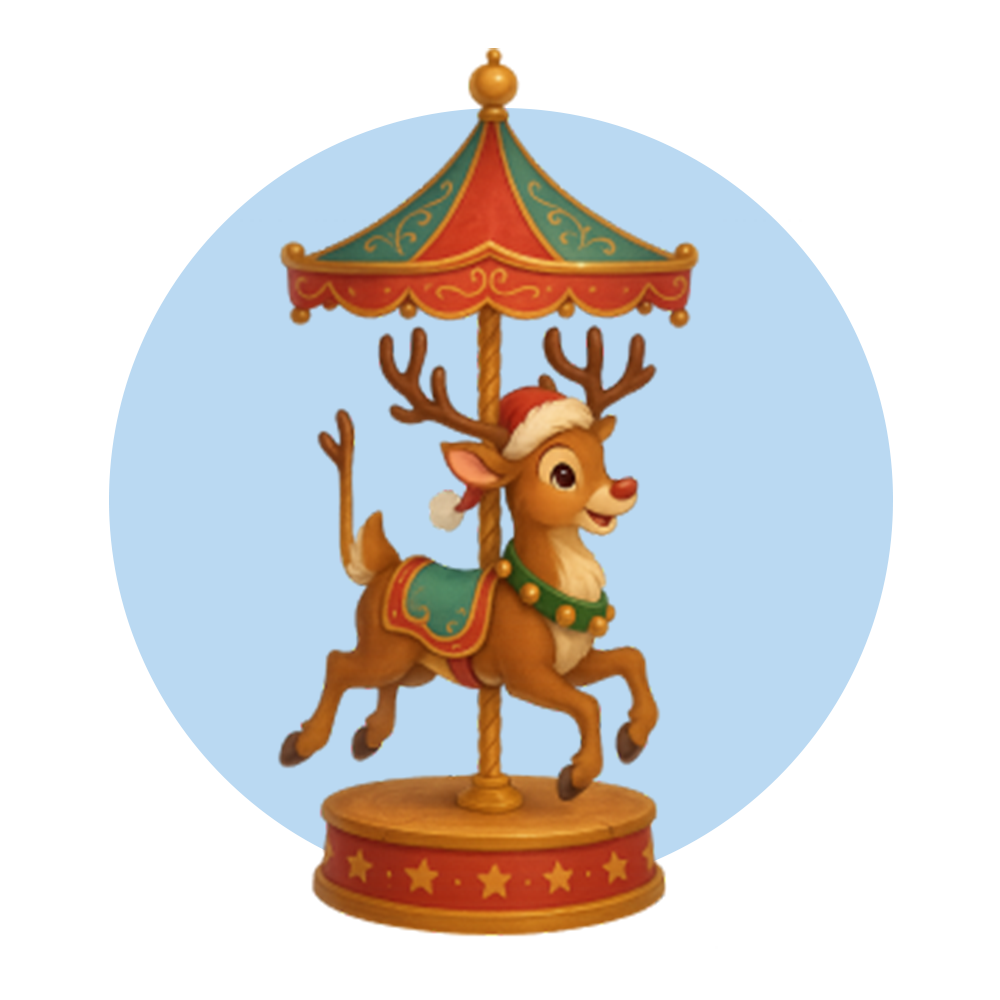 Una giostra natalizia con slitte volanti e renne che girano tra luci e musica. Un’attrazione magica per i più piccoli, perfetta per foto e sorrisi.